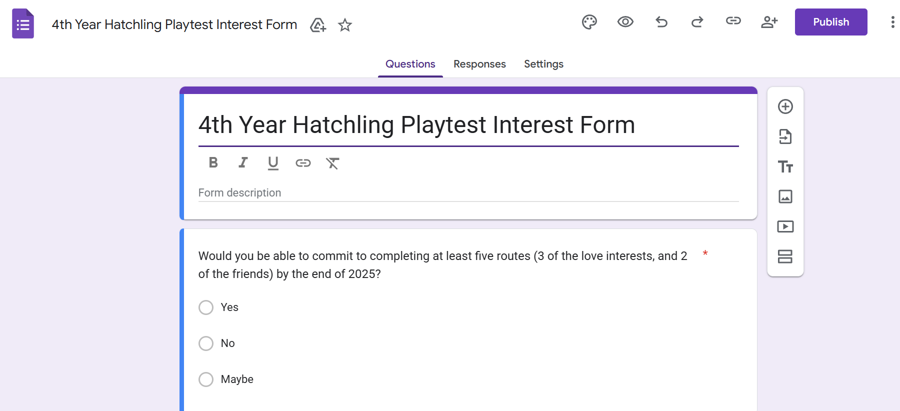 Hello! I don't usually leave comments but i wanted to let you guys know that the google form linked in the devlog isn't redirecting properly. Instead of taking me into a respondents form, it led me to editor mode of the form which i highly believe wasn't intended. Just letting you know!